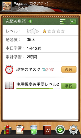 ★辞書検索・メモ帳機能分からない・覚えたい単語があったらその単語をタップすることで、即検索したり、要学習リストに追加して集中的に学習することができます。また調べた単語をメモ帳に入れたり、要学習リストに追加したりすることで、自分でアレンジして学習することが可能です。★発音チェック全ての教材には発音がついています。英単語、英会話などがその場で発音を確認することが可能です。★レベルに応じた学習ユーザーの学習状況によって復習する項目が自動的に決定されます。面倒なことを何も考えず、提示に従って学習していけば英単語や英会話など自然に身につけることが可能です。★学習ログの可視化1日/週間/月間/年間の学習時間・項目数などのデータが学習進捗グラフで表示されます。学習成果を可視化することにより、あなたのモチベーションを高め「学習の継続」を促します。